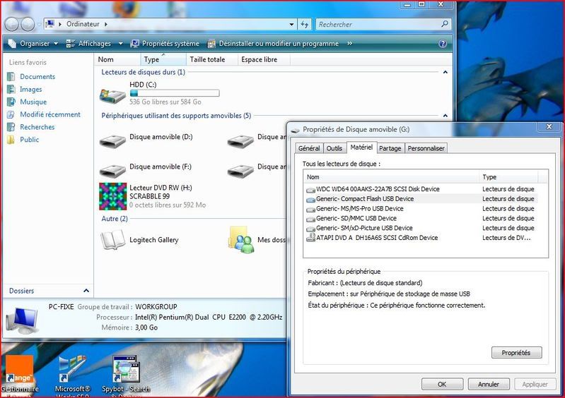 De plus, lorsque j'ouvre le panneau "Ordinateur", il m'affiche 4 disques durs amovibles (plus le lecteur CD). D'où sortent-ils??? Mon DD externe n'est même pas branché, et lorsqu'il l'est il s'affiche encore en plus!