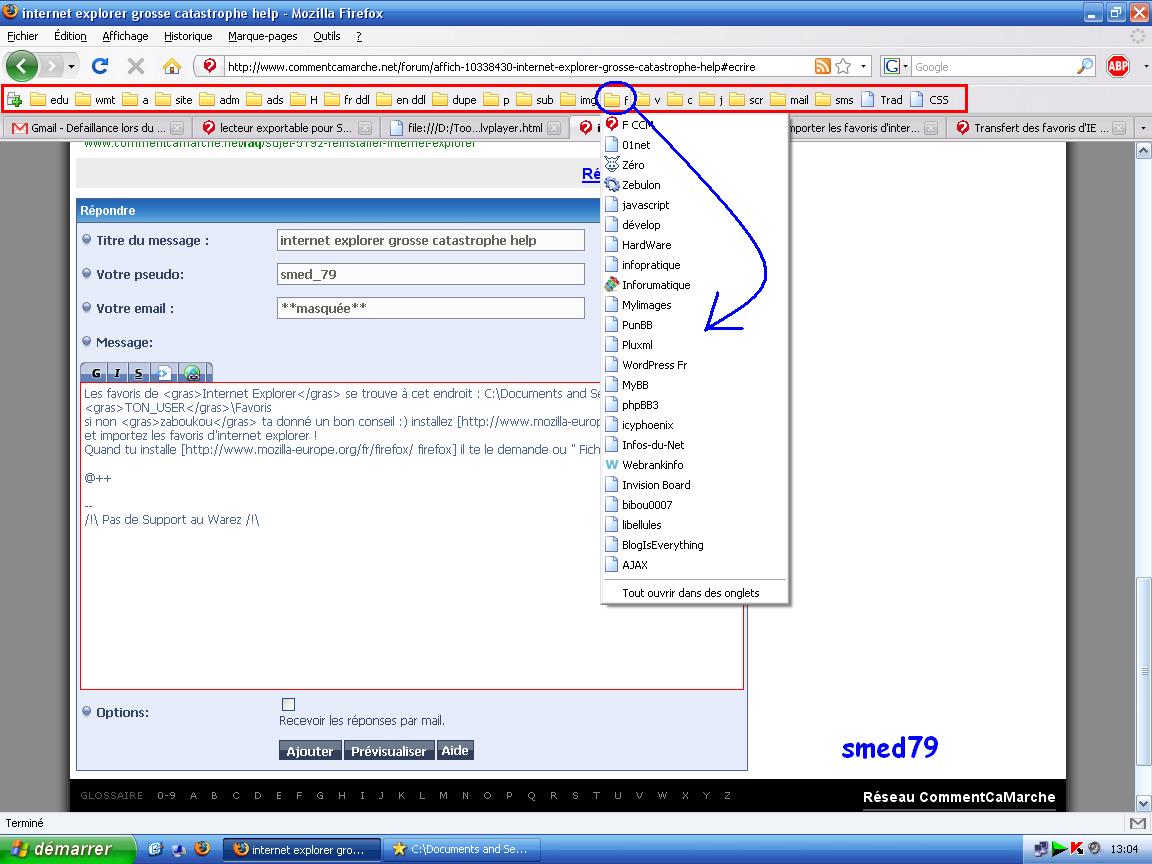 Les favoris de Internet Explorer se trouve à cet endroit : C:\Documents and Settings\TON_USER\Favoris