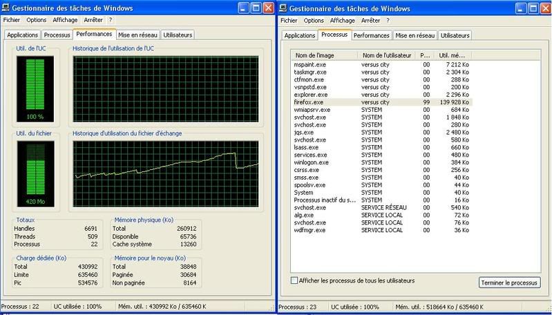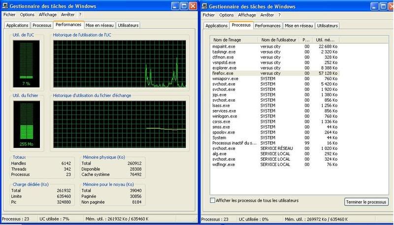bon, a part changer la augmenter la Ram, vous pouvez constater que seulement FireFox qui est en marche, même l'antivirus est désactivé, pas de MSN, ni Rien du tout ...