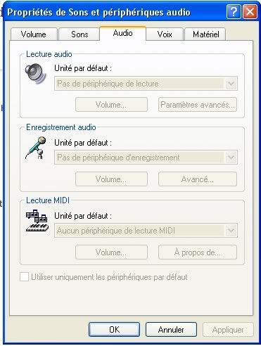 dans cette fenetre va a l onglet va dans "audio" et choisi