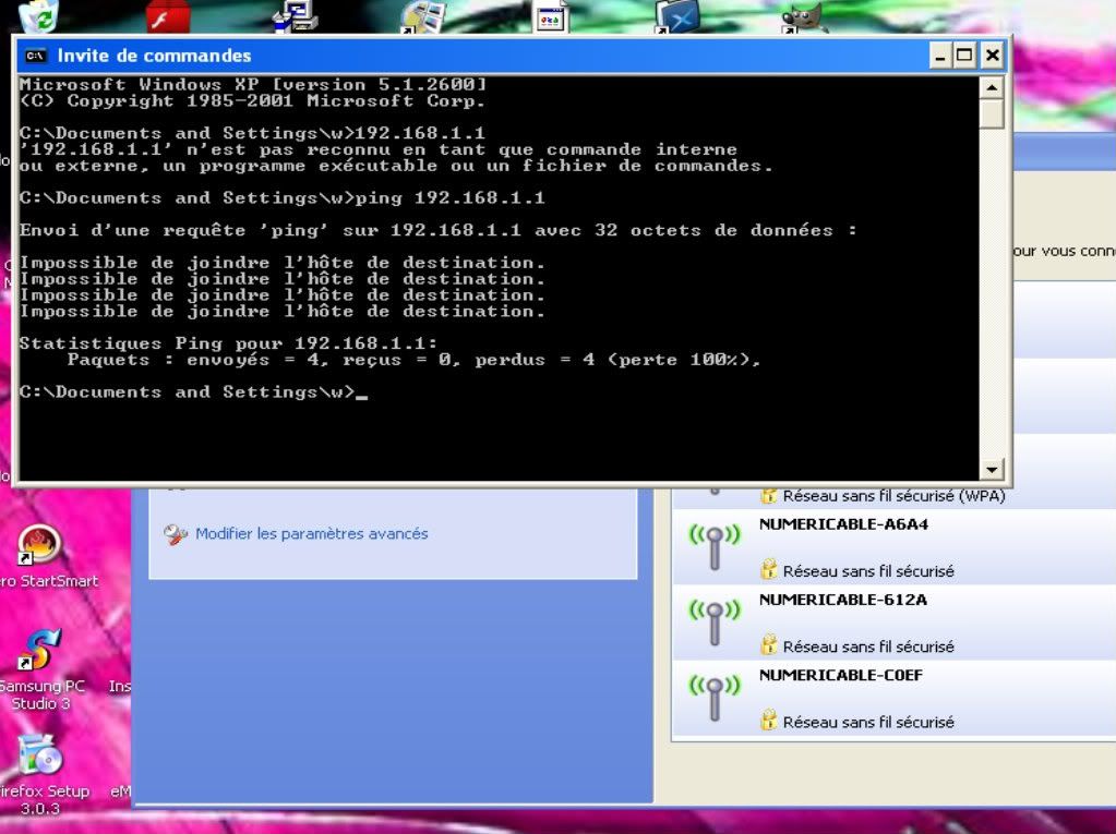 ensuite, dans l'invite de commande, tu tapes ping 192.168.1.1 (par exmple)