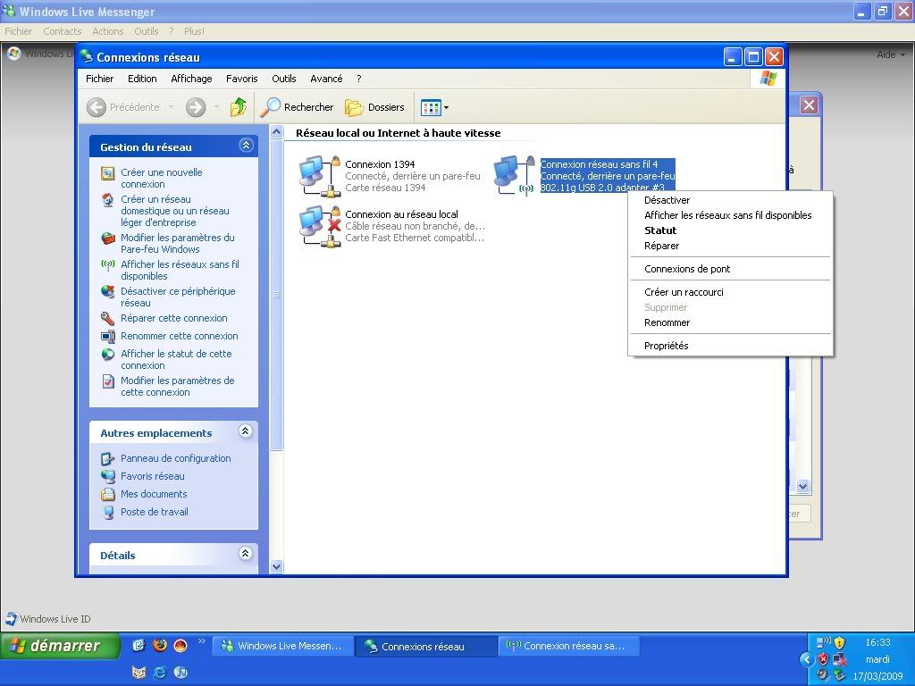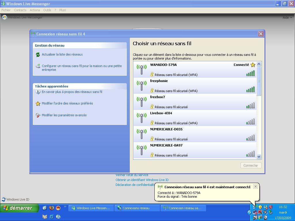tu reconfigurera ton réseau avec l'utilitaire de windows, ou l'utilitaire de la carte wifi