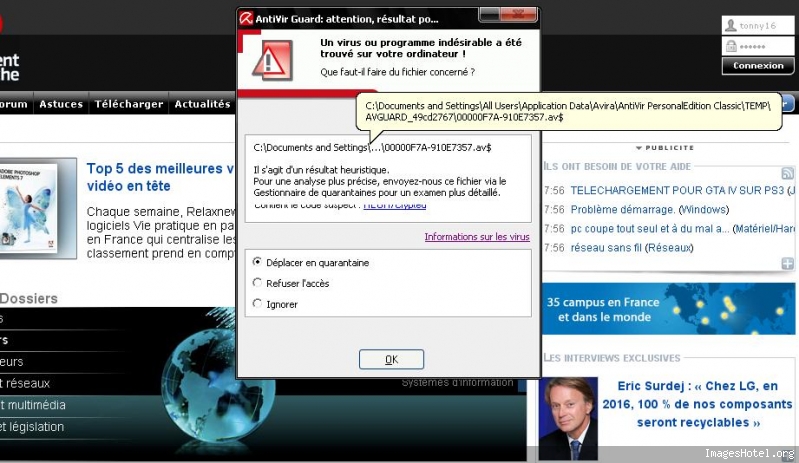 J'ai fait une analyse heuristique avec Antivir et il a trouvé quelque chose mais c'est un fichier à lui. Bizarre non ?