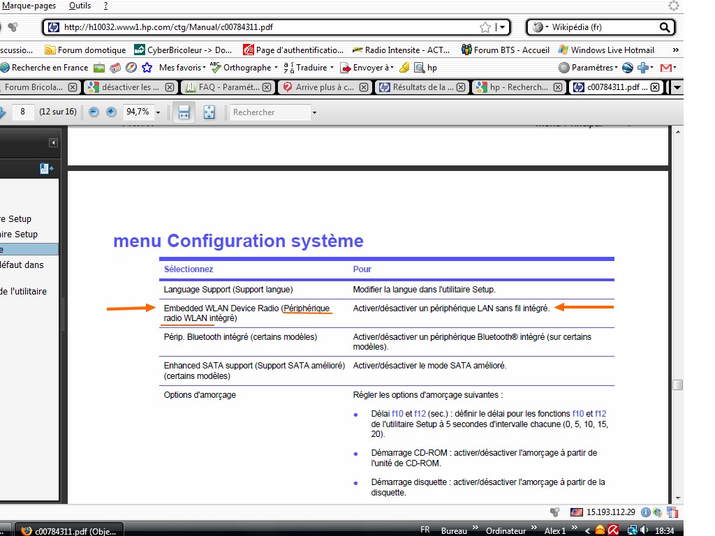 merci pour votre réponse mais j'arrive à aller ds service pour mettre configuration sans fil et je ne trouve pas.