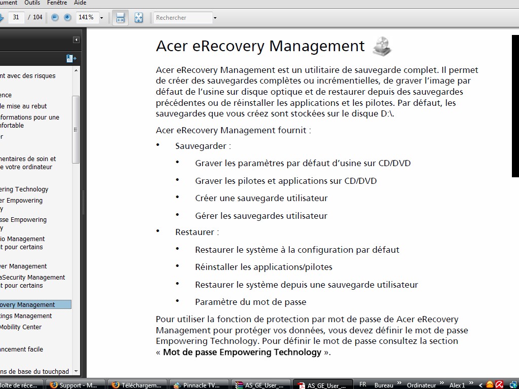 téléchargez votre notice et vous rendre dans la partie Acer eRecovery Management.