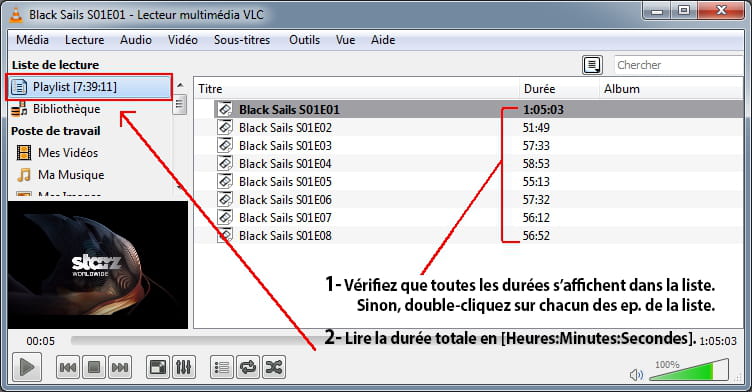 - Entrez dans VLC la totalité des épisodes du pack dans la liste de lecture.