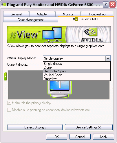 Bon moi j'ai deux lcd identiques, donc sa facilite la tache, et j'ai aussi une geforce, mais une 9600gt, tout marche nickel. Auparavant je possédais une 7900gs, et cela fonctionnait également nickel, mais sa pouvait ramer, 2*(1600*1200) en 3d c'était limite.