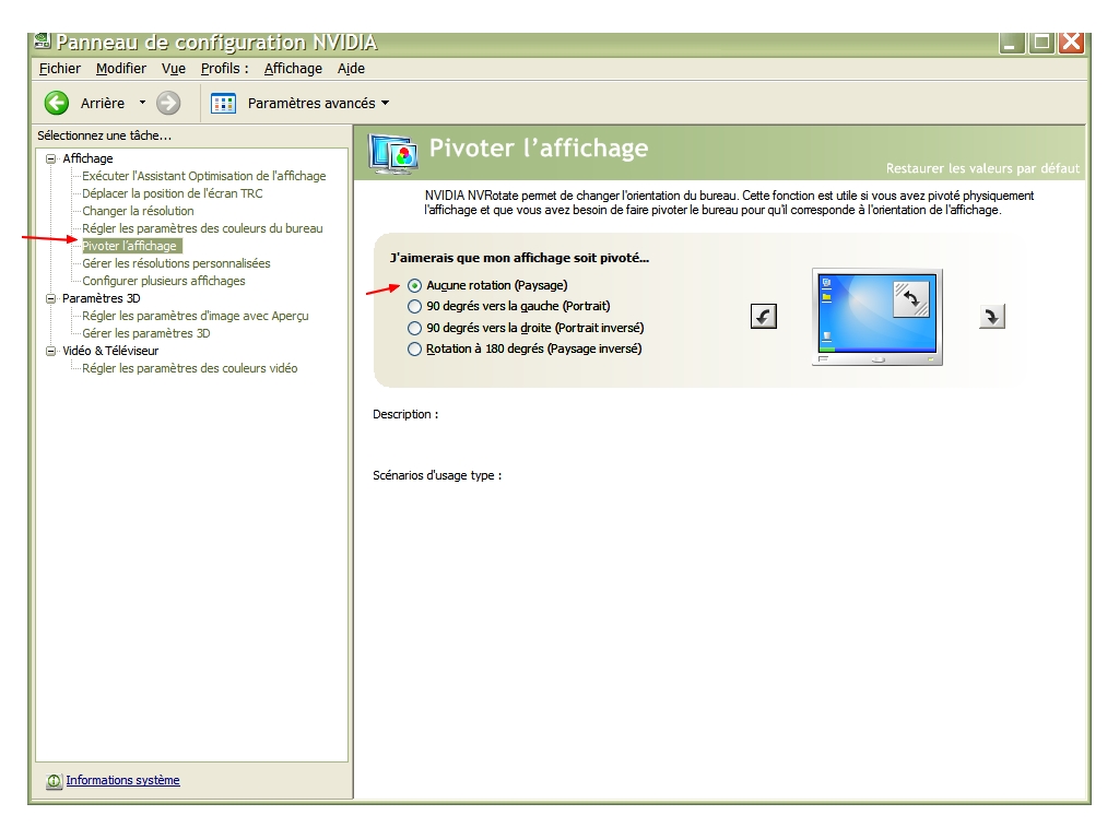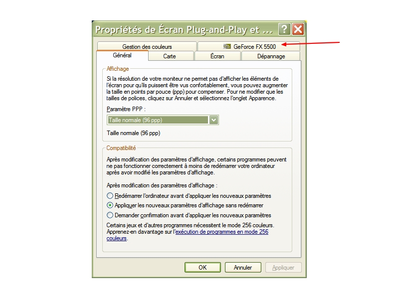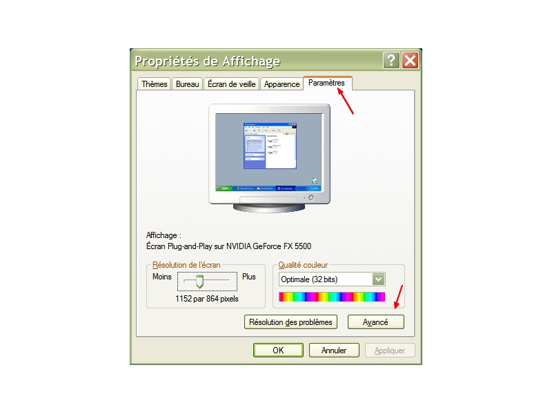 voir dans les options de la carte graphique, clic sur le bureau, puis propriétés, puis clic sur paramètre, puis avancé