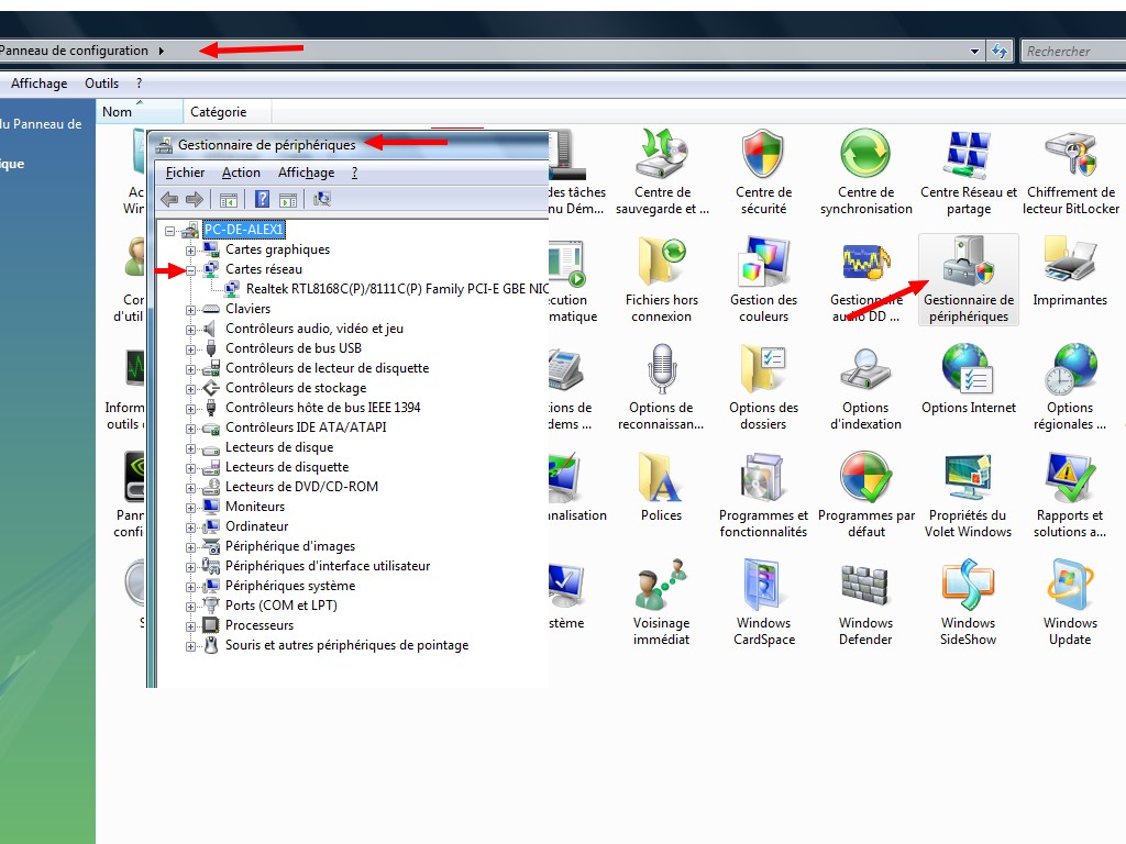 pour le gestionnaire des périphérique voir photo