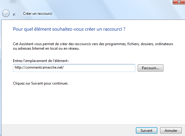 sur ton bureau, clique droit, puis créer, puis nouveau raccourci. ensuite, entre l'adresse internet souhaitée, et donne un nom a ton fichier.
