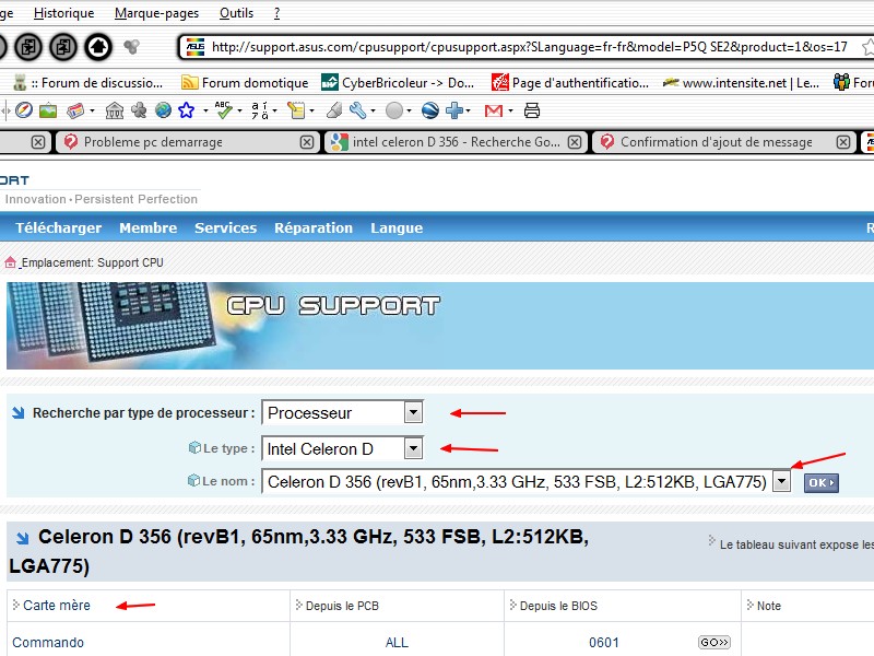 dans mon dernier message, les liens ne vont pas sur la bonne page, si vous voulez contrôler, voir photo, sélectionnez votre processeur dans la liste, et vérifiez aussi.