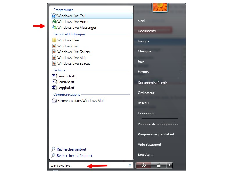 dans le menu tous les programmes, vous devez avoir le dossier windows live