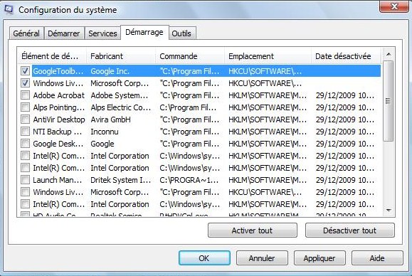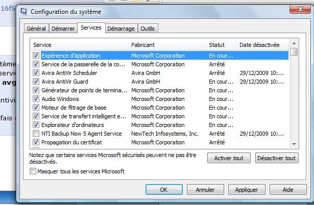 Bien dans la fenêtre "Utilitaire de configuration système", va dans l'onglet "Services" et coche (en cliquant la case) tous les services commençant par Avira ou Antivir.