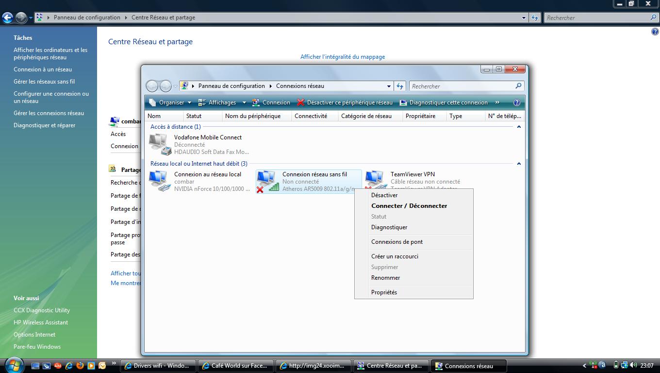 essayez en désinstallant le pilote wifi, puis remettre celui ci
