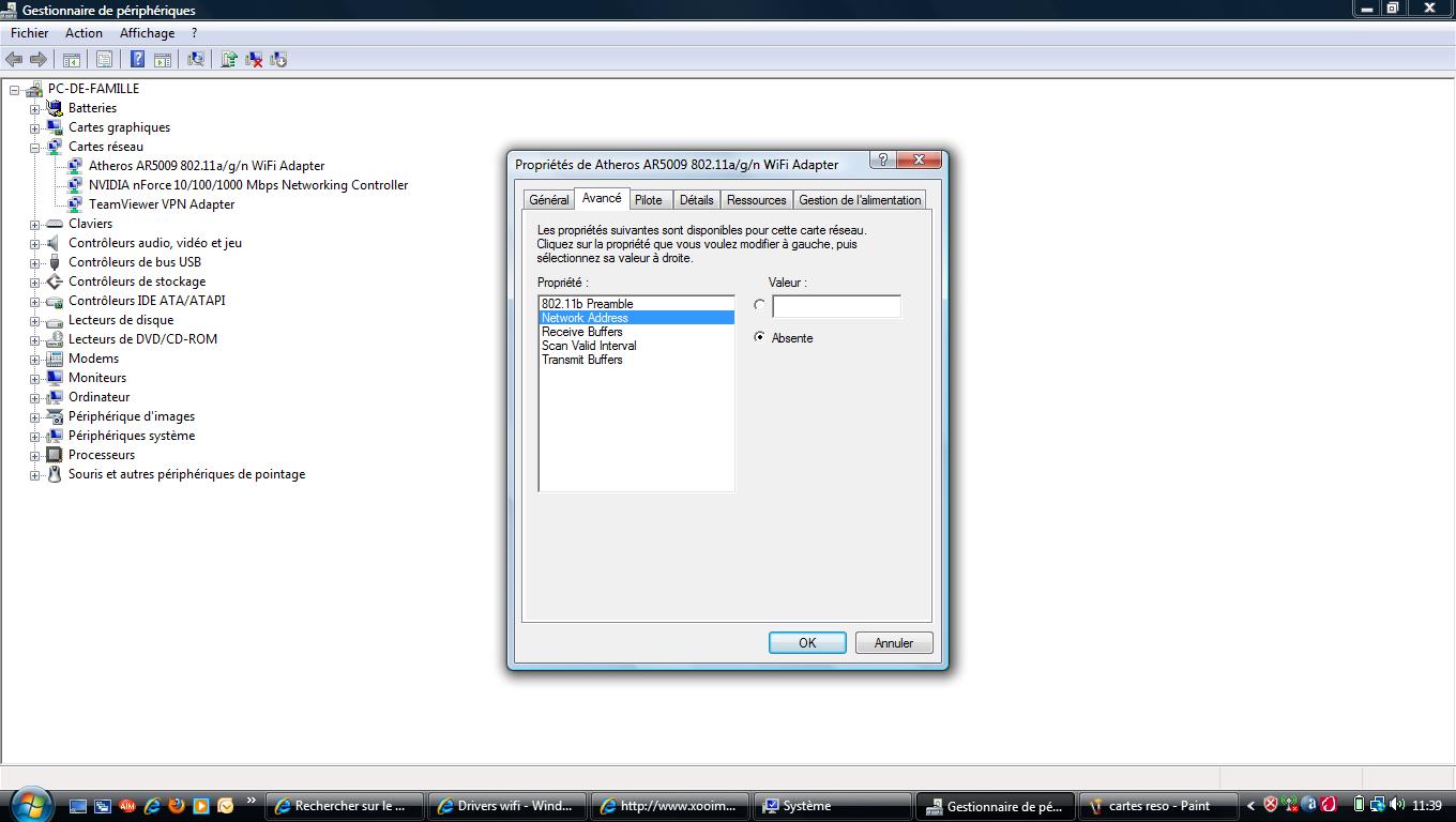 Cliquez sur le signe plus (+) en regard de la catégorie Cartes réseau.