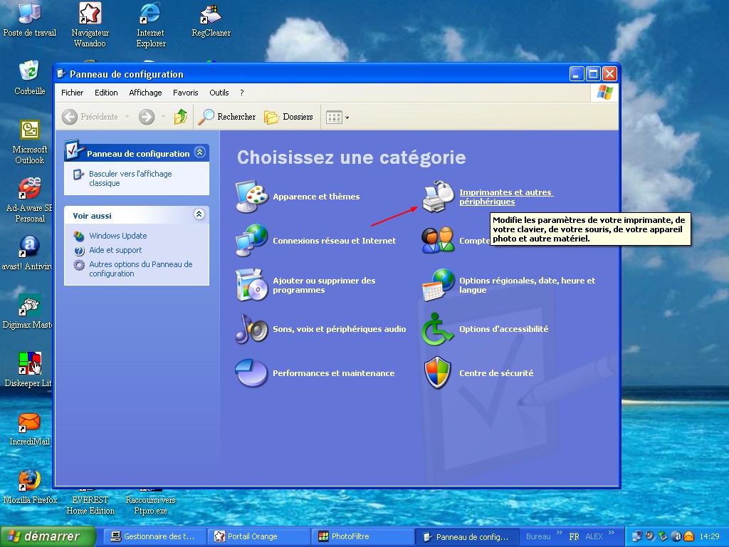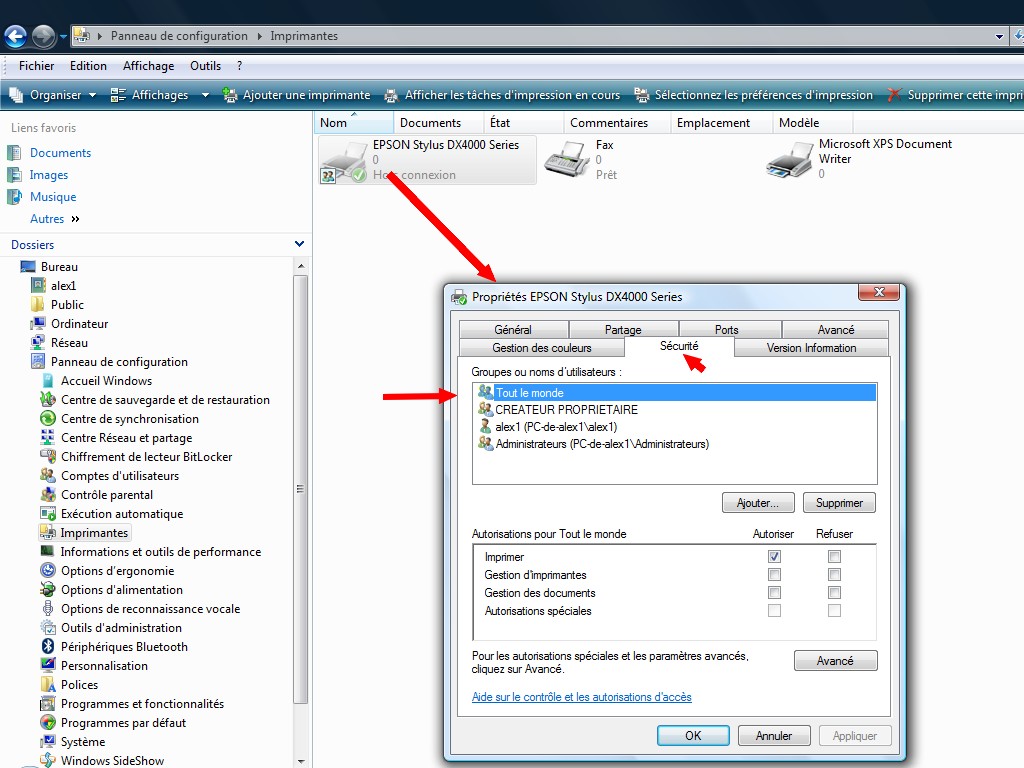 Je possède depuis peu un ordinateur sous windows 7 (64 bits prémium) sur lequel une imprimante est connectée en USB. Cet ordinateur est relié à un autre ordinateur (sous windows XP SP3 édition familiale) par l'intermédiaire d'un switch; lequel switch est relié à ma box (alice). Avec ce cablage, je peux acceder à internet de l'un ou de l'autre PC. Je souhaiterai aussi pouvoir imprimer du PC sous XP vers l'imprimante qui est connectée au PC pourvu de seven. J'ai essayé en vain. Quelqu'un maitriserai-t-il la procédure ?