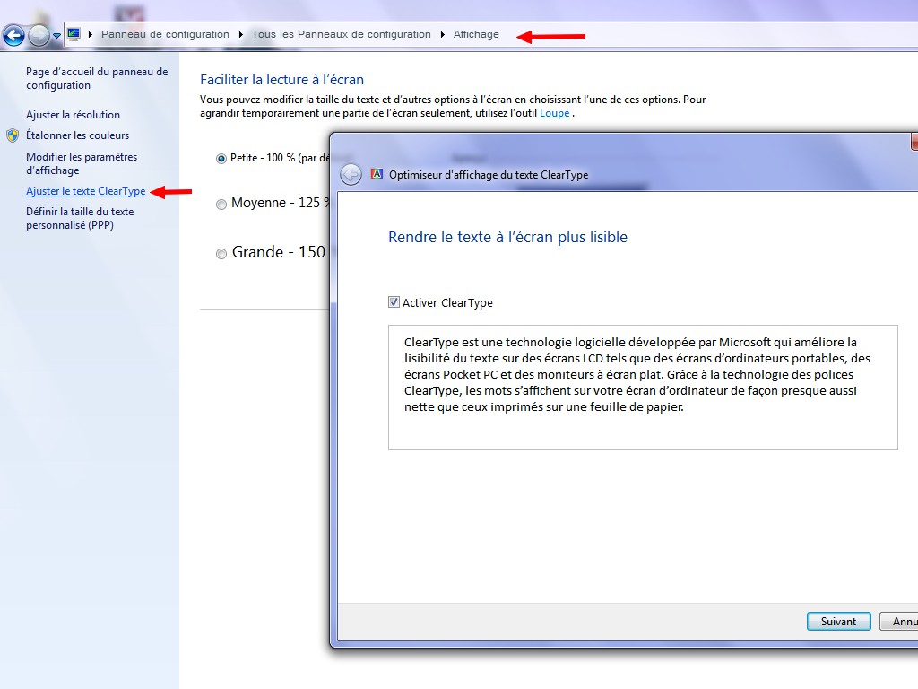 Je viens de mettre à jour ma version Windows (je suis passé de Vista à 7), et je remarque que les lettres apparaissent floues... Alors que sur Vista, c'était net ! Pourriez-vous m'expliquer ce que je dois faire ? Peut-être un problème de pilote graphique... ?