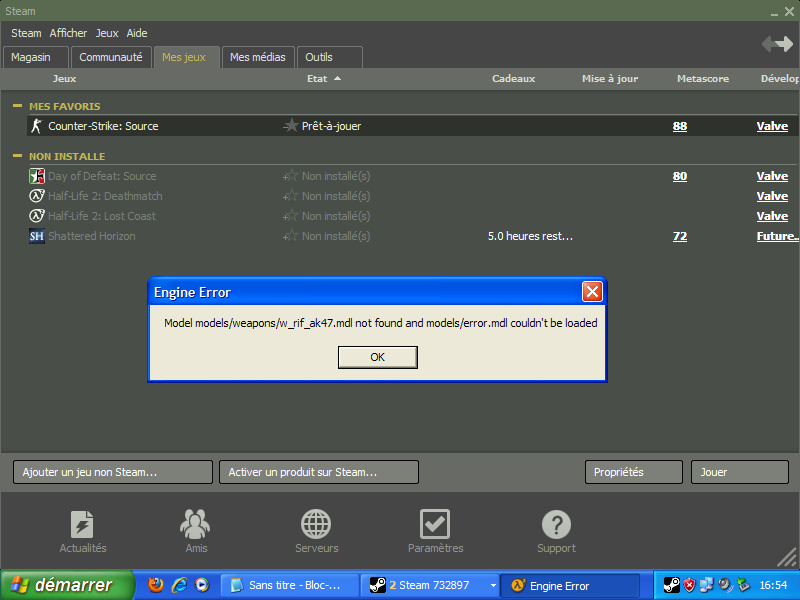 Je lance Counter Strike : Source je choisi mon serveur ( tout marche ) puis le jeux ce quitte et je vois ça : http://image.noelshack.com/fichiers/2010/07/1266768371-sans_titretrytfruy-edb60a4292.png . Voila quelqu'un pourrait t-il m'aider pour ce problème ? Merci d'avance :-) (oopas :hum: )