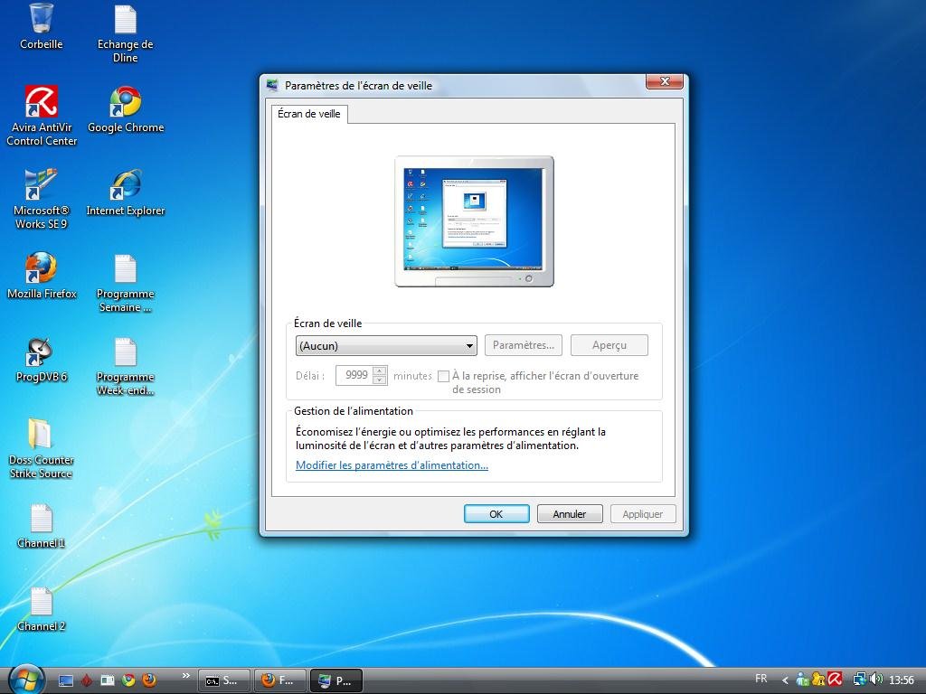 Voilà j'ai un ordinateur Windows Vista et je souhaiterai désactiver l' écran de veille, enfaite le problème c'est que je l'ai désactivé (Voir Screen). En faite l' écran de veille s'active toutes les 20 minutes, je ne sais pas pourquoi :(