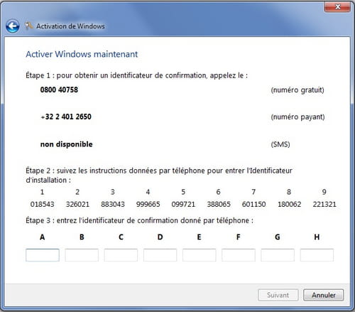 mais le Numéro de tel de Microsoft pour l'activation est t'il le bon .