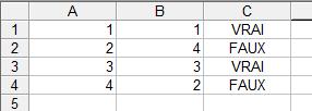qui doit nous afficher VRAI (et pas FAUX!) puisque B4=2=A2 ?
