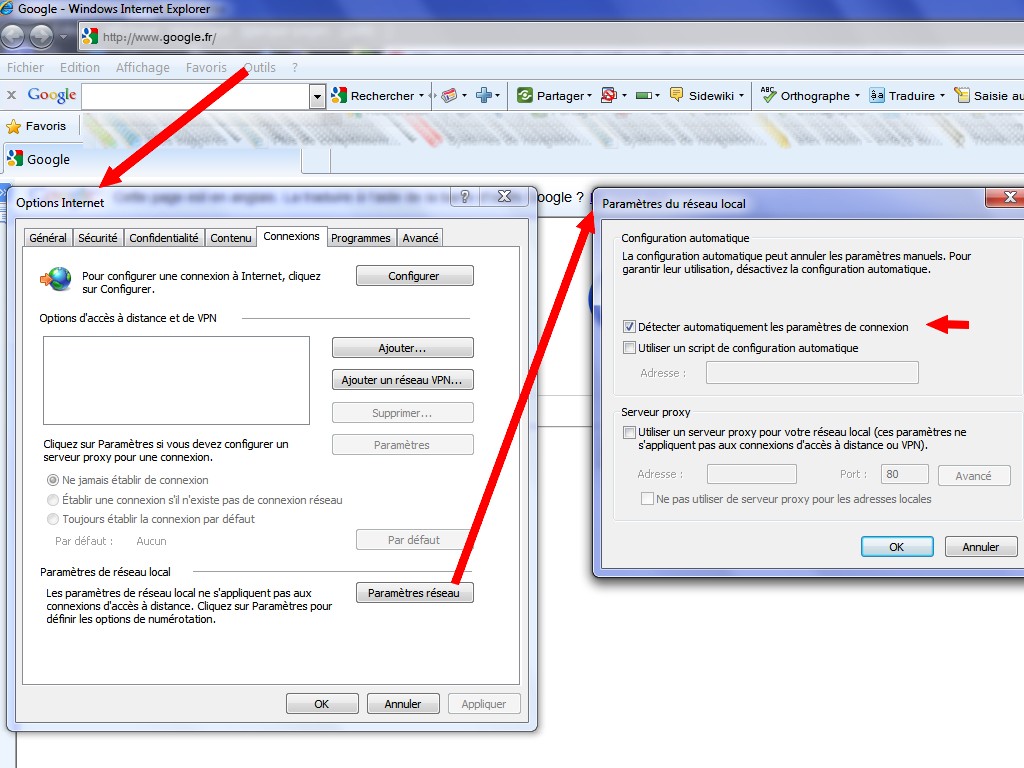 vérifiez ces paramètres là, mettre les mêmes