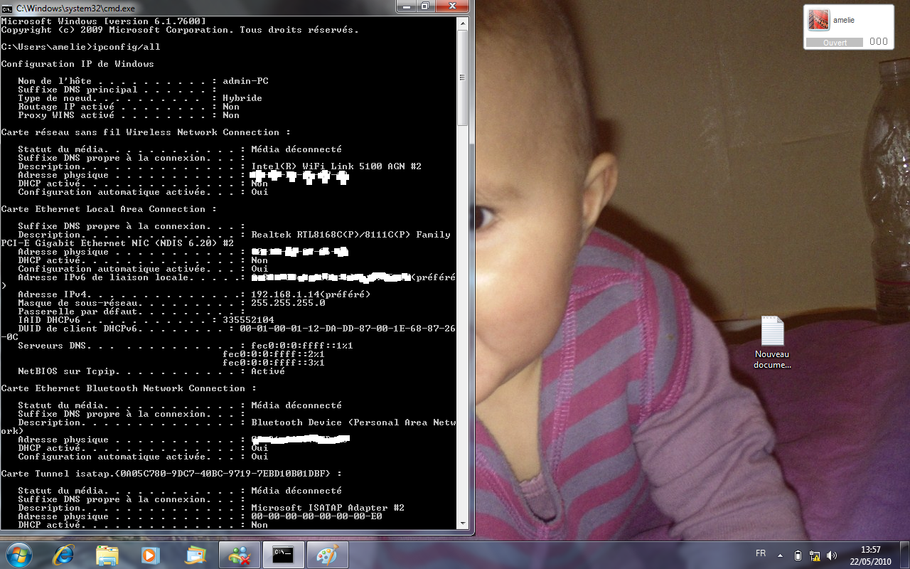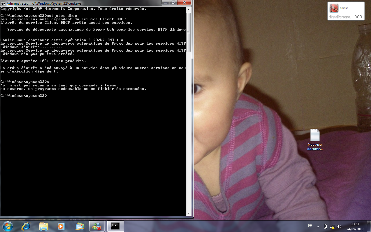 je ne peus pas redemarrer le client dhcp, tout est crisé. Je peus seulement actualiser et aller sur propriétés