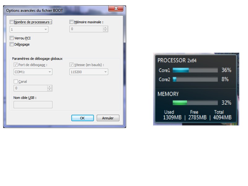 Bonjour, j ai besoin d aide car je viens de m apercevoir que mon ordi tourne avec 1 processeur alors que c est un dual core. Dans le menu deroulant(options avancees du fichier boot)le menu deroulant ne m affiche que 1 processeur alors que je pouvais auparavant en afficher 2. J ai du faire une mauvaise manip je ne sais plus. merci de votre aide.