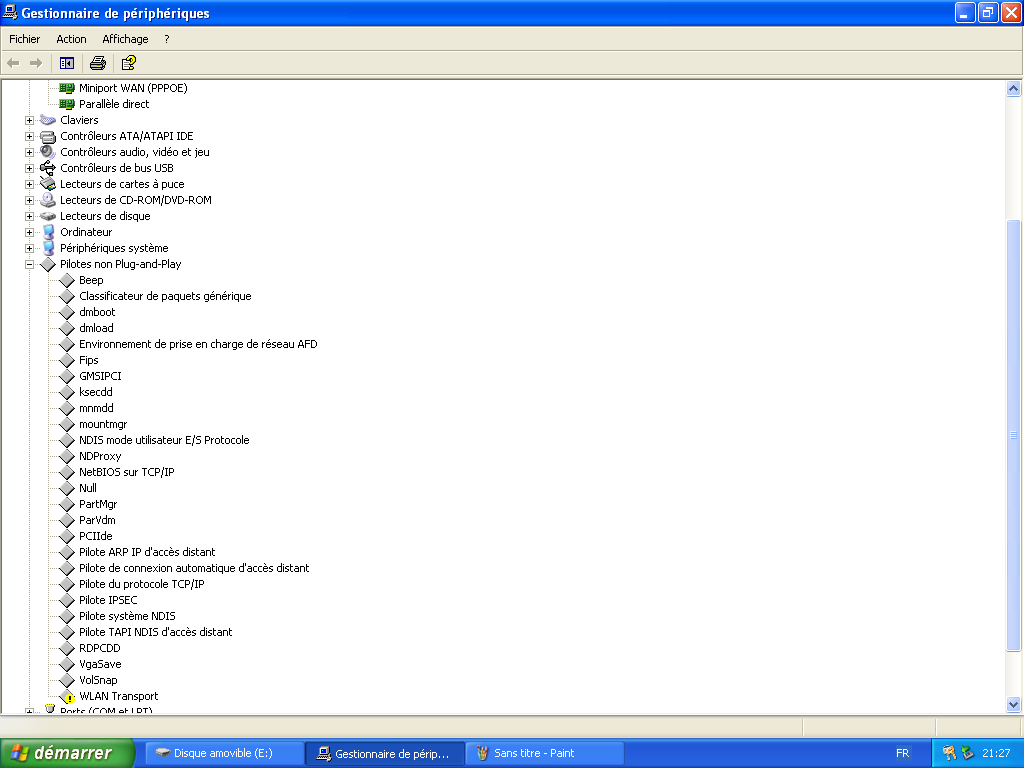 essayez de me faire une copie d'écran du gestionnaire de périphériques.