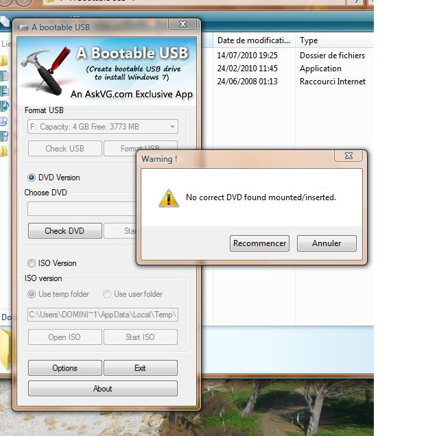 * Choisissez un DVD ou une image ISO (Pour copier les fichiers nécessaires à la clé USB)
