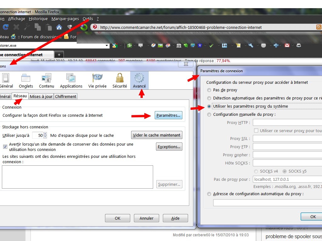 dans firefox, clic sur outil => option, puis vérifiez que vous avez les mêmes paramètres, voir photo