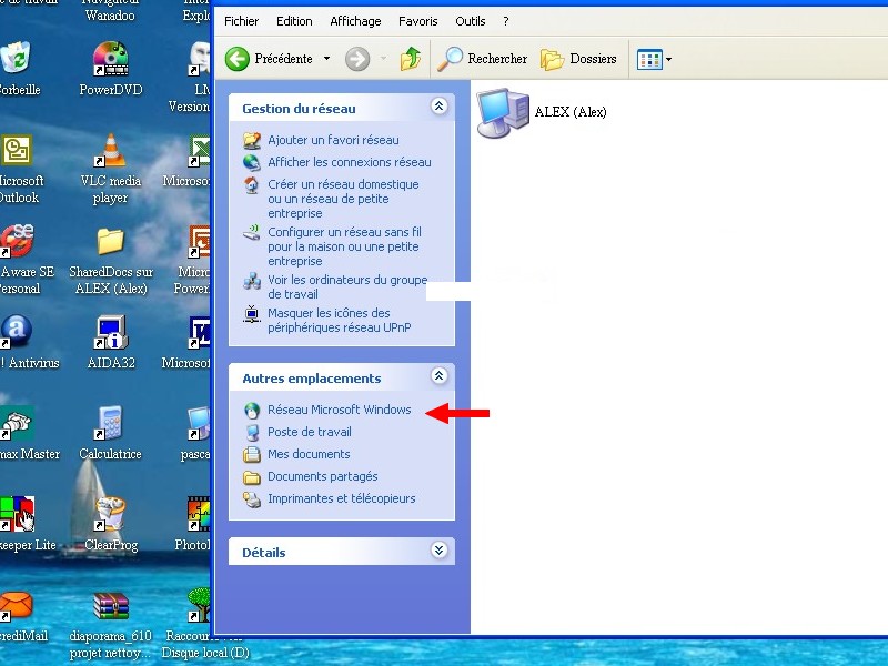 sur xp, dans favoris réseaux, clic à gauche sur réseaux microsoft, voir photo