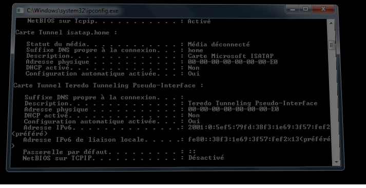 une fenêtre va s'ouvrir, tapez ipconfig /all