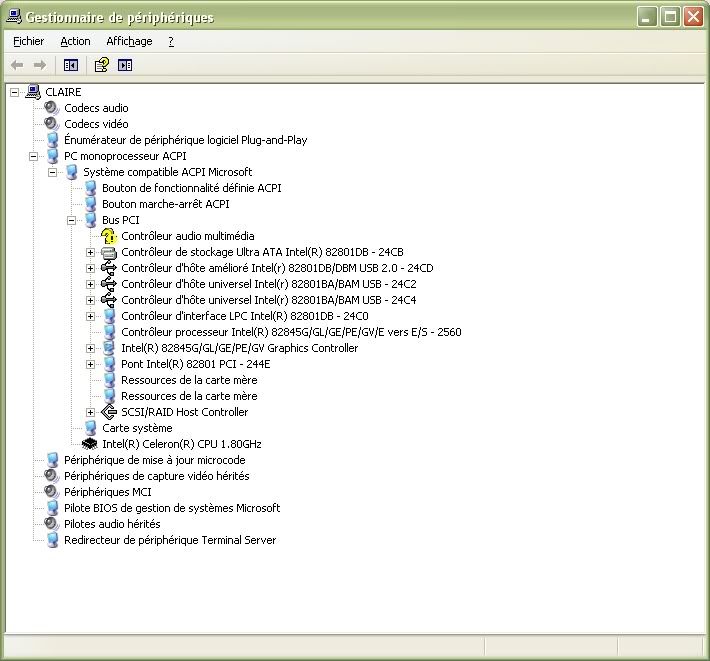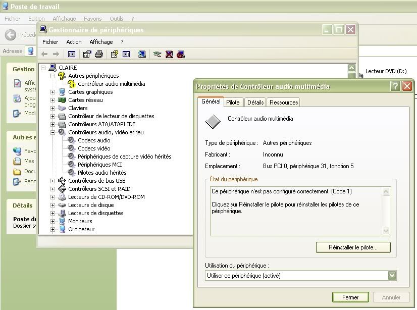 A un moment tout à l'heure en "bidouillant" j'ai cru voir parler mon PC de "périphérique contrôleur audio" qui manquait...