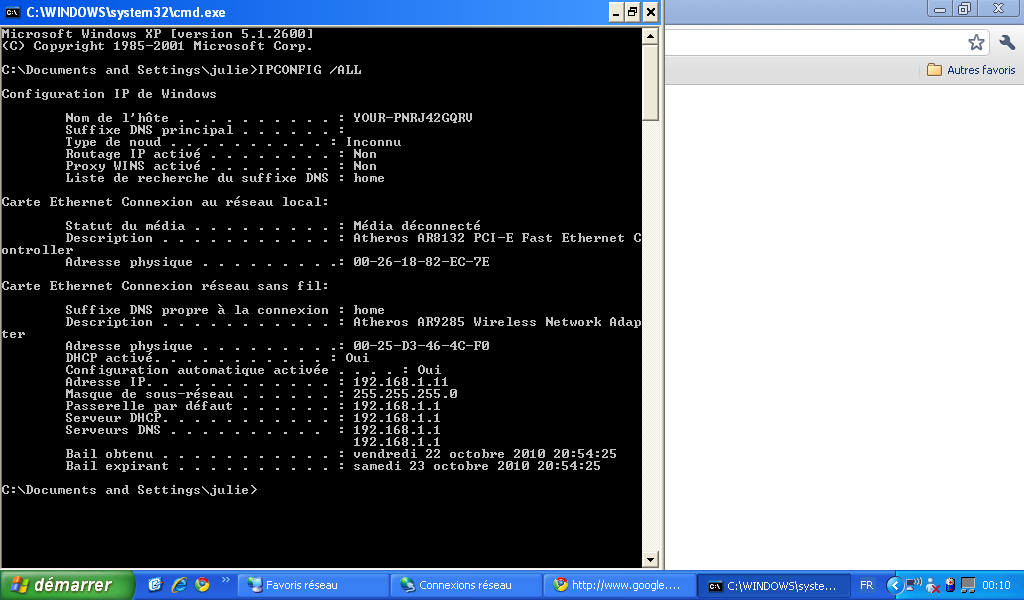 une fenêtre va s'ouvrir, tapez ipconfig /all