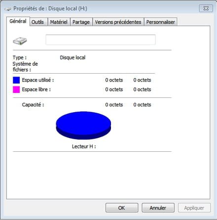 Voila comme j'ai pu le voir sur pas mal de forum mon problème n'est pas insolite, mais seulement je ne trouve pas la solution pour repasser en NTFS, quand j'essaye soit windows me dit que le disque est protégé en écriture, soit que windows n'a pas pu effectuer le formatage etc ... Je n'ai pas de souci concernant les fichier qui s'y trouvaient (j'ai des copies sur mon PC) donc pas besoin de récupération, tout ce que je veut c'est formater en NTFS. Mais la est mon problème, impossible de le faire, d'ailleurs je ne sais même pas si c'est possible, avec la gestion des disques je ne peut pas le formater,ni le supprimer ect ... je peut juste accéder aux propriétés ou je constate que l'espace utilisé est de 0 octet ainsi que l'espace libre (surement du au RAW).