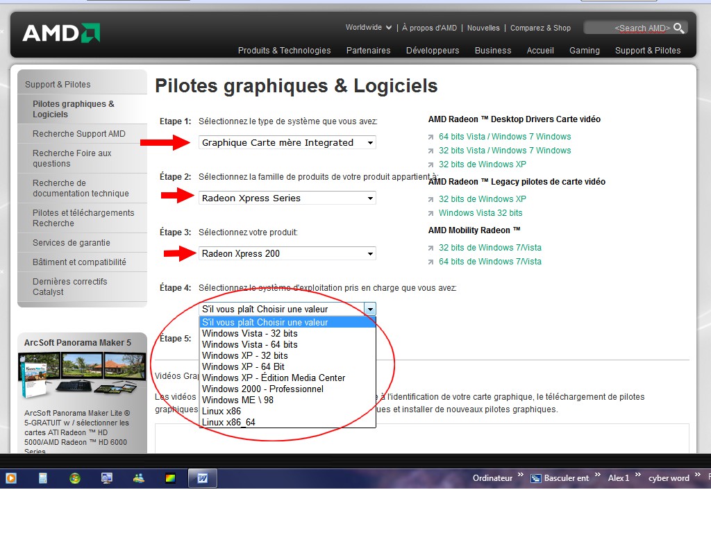 quel driver avez vous pris, car sur le site ATI, il n'y a pas de pilote pour windows7