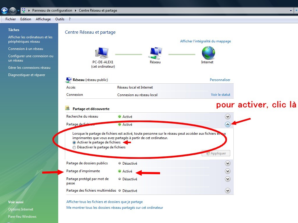 vous avez bien activé le partage d'imprimante ici