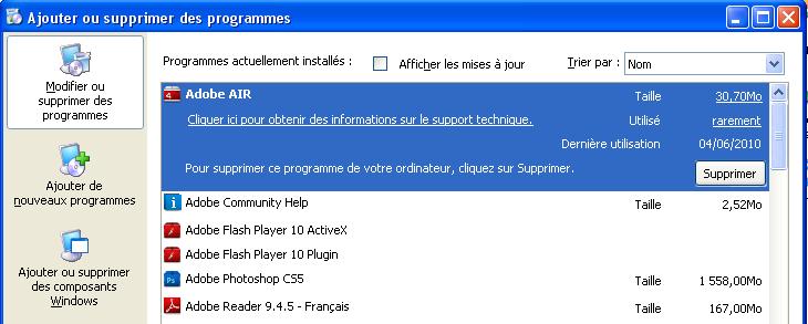 J'ai plein de truc Adobe je suppose que je supprime tout hein?