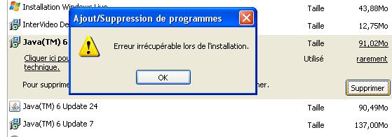 Arf ben voilà ce que j'ai quand j'essaie de supprimer le premier Java :