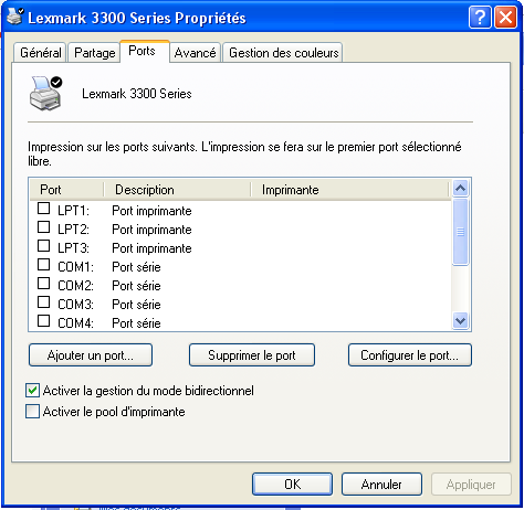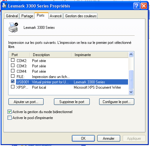 J'ai une imprimante Lexmark serie X6100 connecté en USB sur un PC sous XP .