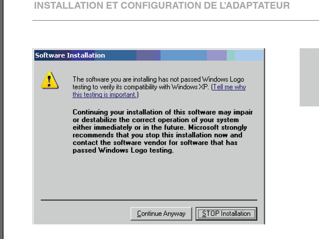 sur le manuel que j'ai lu, pour xp il affiche un message d'erreur lors de l'installation, voir photo