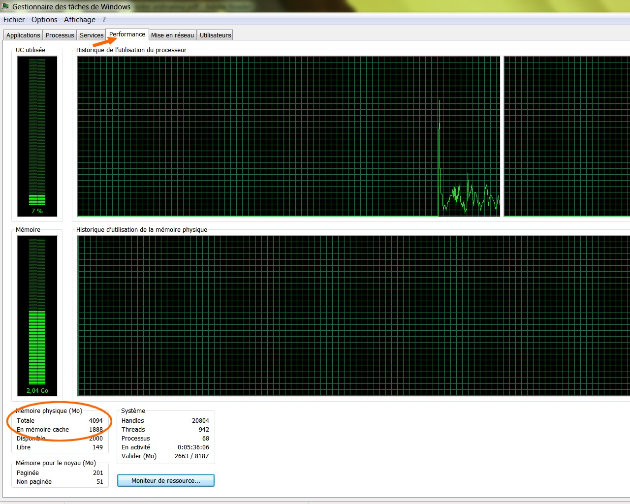 Celui-ci dans le système affiche: Mémoire installée (RAM): 4,00 Go (2,00 Go utilisable), pourtant mon OS est bien sous windows 7 64 bits.