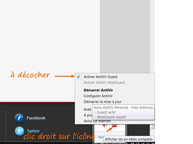 j'ai essayé de faire une restauration du système mais cela échoue apparemmeent à cause de l'antivirus (j'ai avira), on me demande de le désactivier temporairement sauf que je ne sais pas comment on fait !