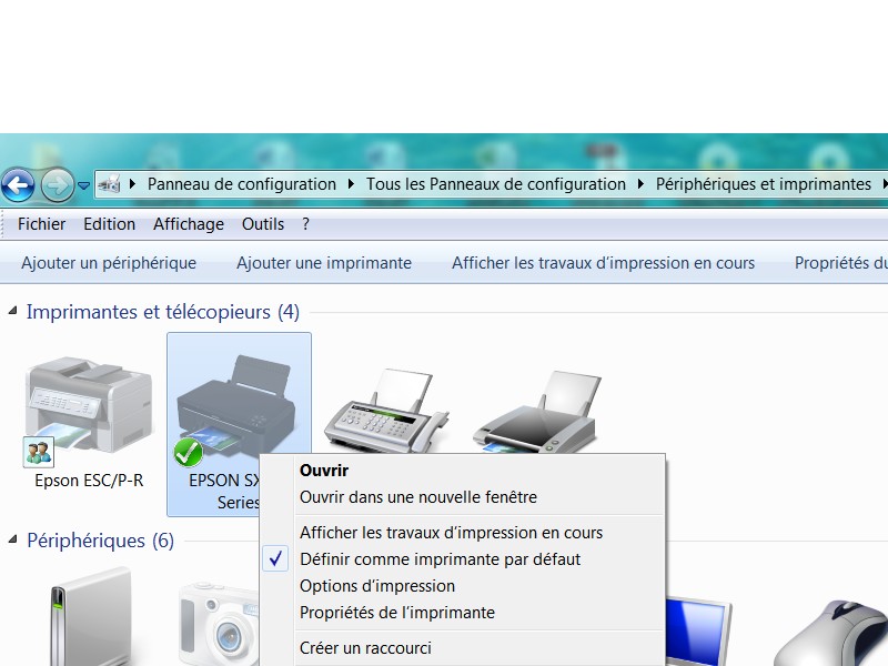 dans le panneau de configuration, périphériques et imprimantes, clic droit sur votre imprimante, voir photo