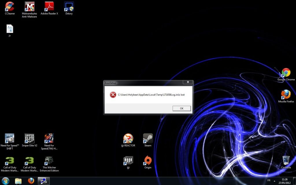 Sinon pour avoir plus de détail sur le problème essaies de voir les erreurs dans l'observateur d'évènements, dans Tous les programmes -> Outils d'administration -> Event viewer il me semble. La tu regardes les erreurs qui sont dans Journaux windows ça devrait te donner des pistes sur l'origine du problème.