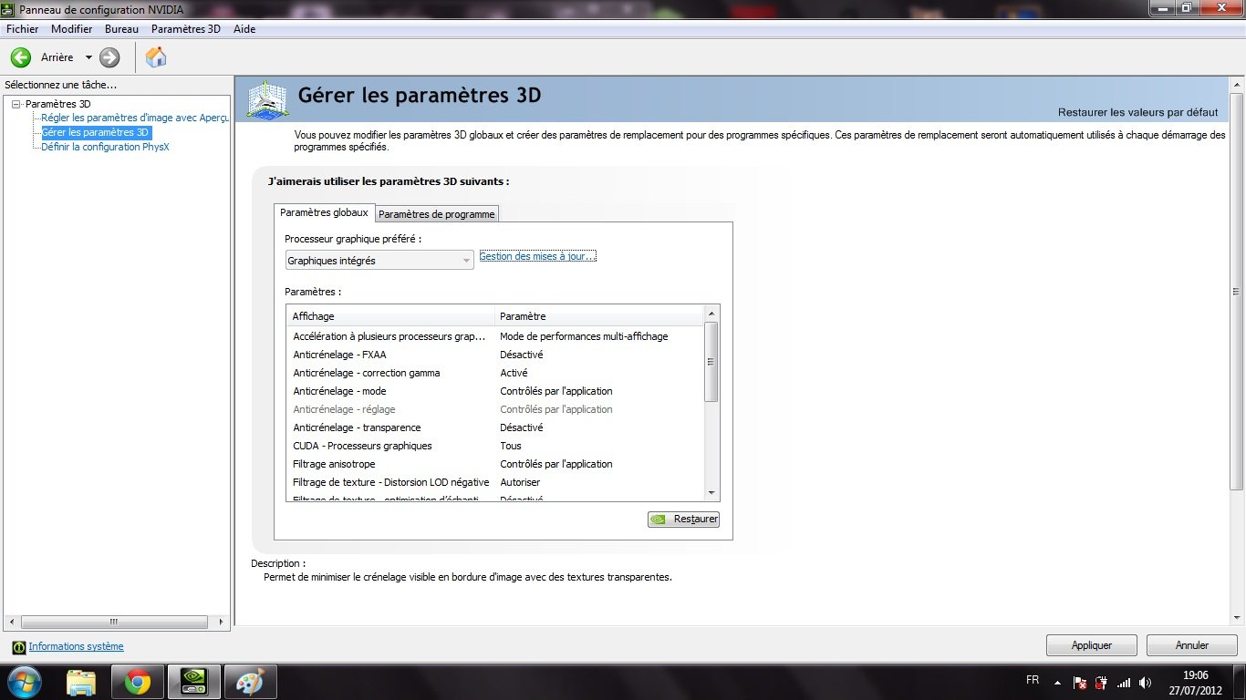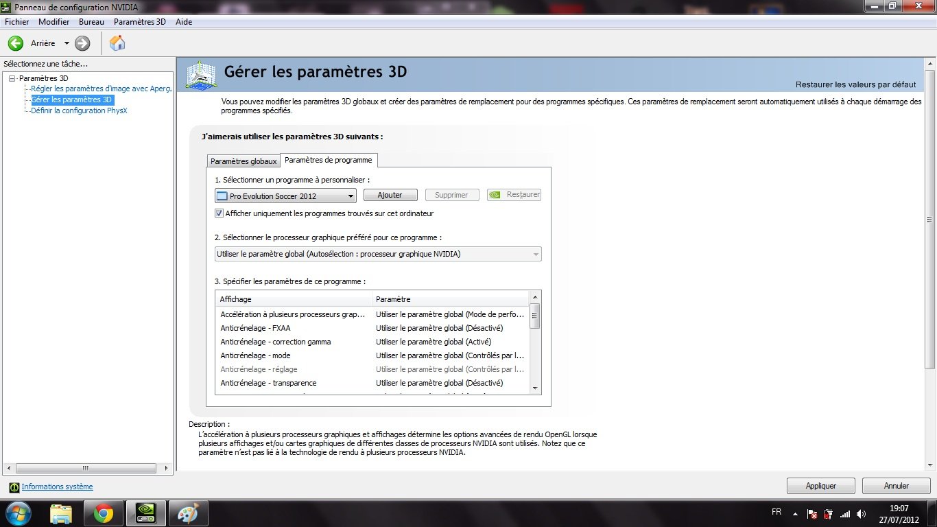 c'est de la que vient le problème tout les jeux que je lance ( bioshock 2 , borderlands pes 2012) qui devrait tourner a l'aise me disent que je n'ai pas la carte graphique adéquate j'ai essayer d'aller au panneau de configuration nvidia mais voila ce que ça me donne