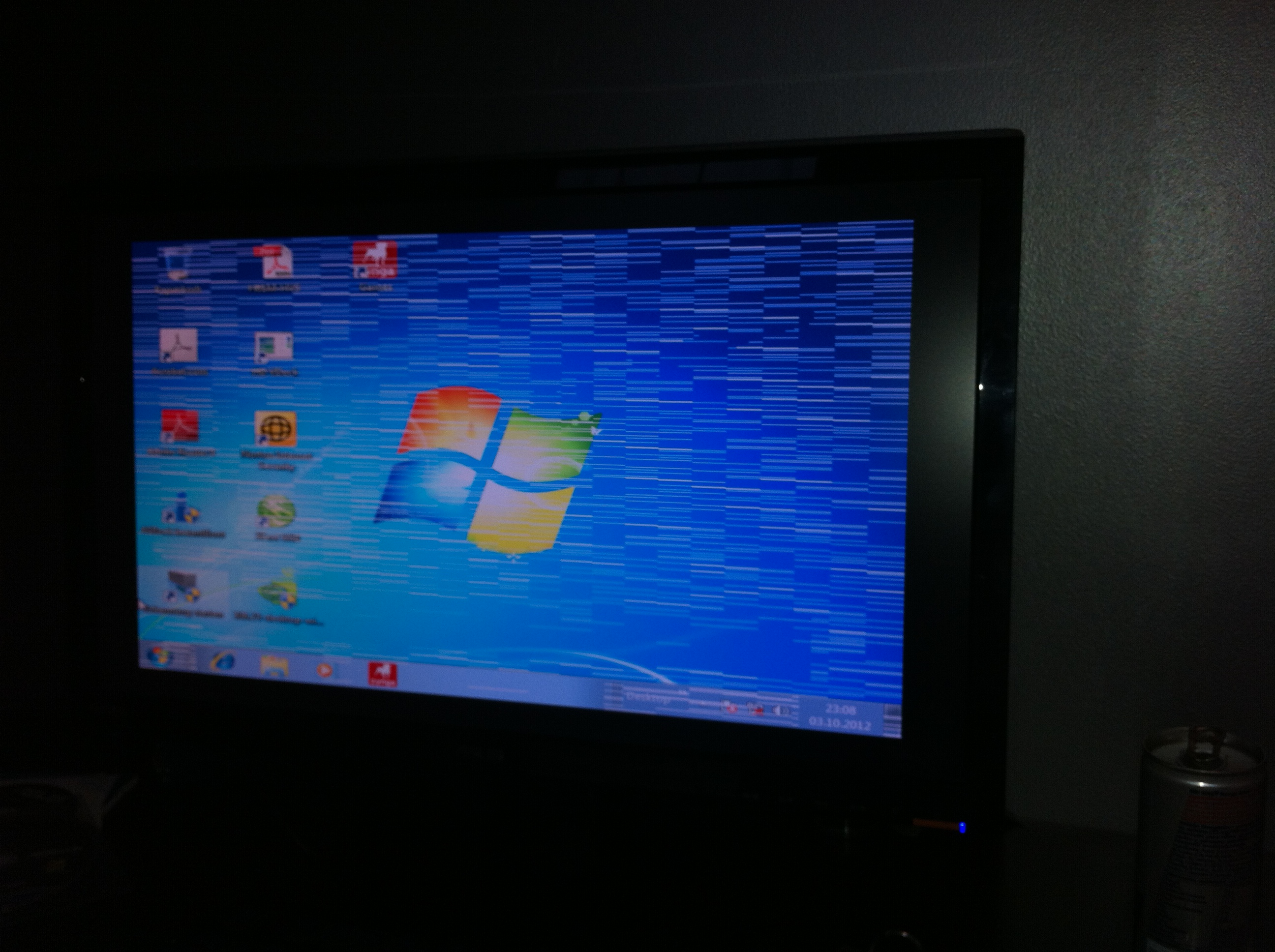 Fonctionne, un bien grand mot, car une énorme quantité de bandes blanches horizontal apparaissent sur l'écran, de plus, la resolution ne va pas entierement sur mon ecran 24 pouces (bandes noir sur les coté), aucun des choix de resolution ne correspond à celui de mon ecran. (Le windows est en allemand en plus, pas evident)
