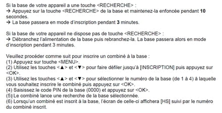 Si vous possédez la notice il faut chercher à "inscrire", "associer" ou "appairez" un combiné..