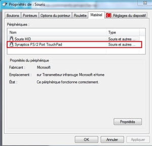 j'ai bien éte dans panneau de config ,matériel,souris,et la je n'ai pas pavé tactile donc je ne sais pas ce qu'il faut que je fasse d'autre